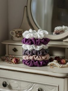 Svaka Tintilintić scrunchie je pažljivo izrađena na našoj mašini i dovršena ručno, sa puno ljubavi i pažnje. Naše gumice u raznim bojama ne samo da dodaju šarm vašoj kosi, već i podržavaju domaću proizvodnju.